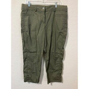 Chico's Sz 2 (US L 12) Capri Green Button Detail Pants