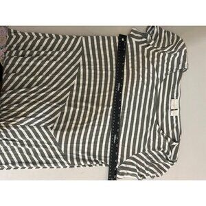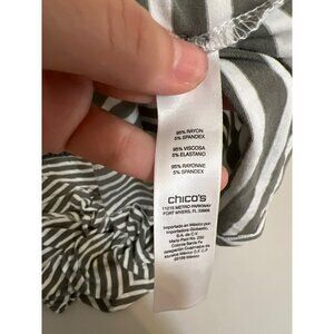 This Chico's size 2 (US L 12) tee shirt dress is perfect for a relaxed, beachy vibe. Its grey and green stripes lend a casual look, while the stretchy fabric ensures comfort.