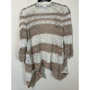 Chico's Sz 2 (US L 12) Open Front Knit Cardigan Beige White Stripe Sequin Detail