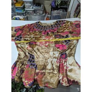 Add a touch of elegance to your wardrobe with this Chico's tunic blouse. The boat neck and relaxed fit make it comfortable and versatile, while the beaded accents and multicolor design add a pop of style. Made with lightweight and packable polyester material, this blouse is perfect for any occasion. Hand wash only for easy care. Size 2, hook & eye closure, and medium sleeve length.Bust 45" stretched waist 32" not stretched