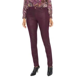 Chico’s Sz 2.5 Wine Purple Faux Knit Suede Shimmer Slim Straight Leg Pants