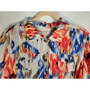 Chico's Sz 3 Linen Blend Jacket Aztec Southwest Button Front 3/4 slv Size 16-18