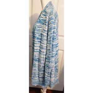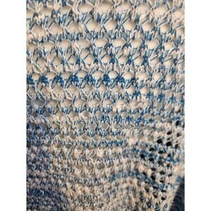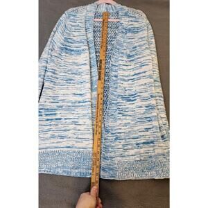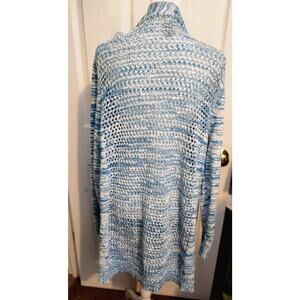 Chicos Sz 3 US L Blue White Knit Open Cardigan Sweater 100% Cotton Long Sleeve. The back of the sweater is an open knit. Excellent used condition, no stains or holes. Smoke-free home. Check out my other items. I will combine shipping
