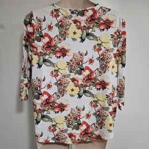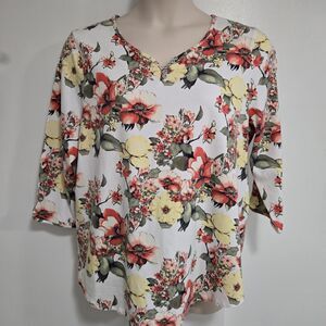 Chico's Sz 3 (XL) Coral Multi 3/4 Sleeve Sweetheart Neckline w/ Button Detail