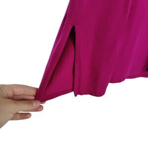 Chico's women's purple short sleeve t shirt or tunic in super soft stretchy pima cotton/modal/spandex blend. Side slits, rounded neckline.