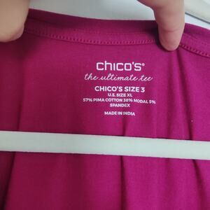 Chicos Sz 3 (XL) Ultimate Tee Pima Cotton Modal Tunic Top Purple Short Sleeve