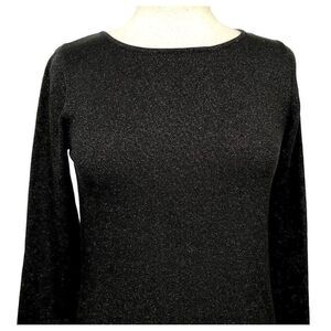 Chico's Black Silk Blend Metallic Long Sleeve Pullover Top Sz 0