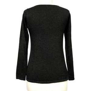 Chico's Sz XS Black Metallic Silk Blend Long Sleeve Pullover Top