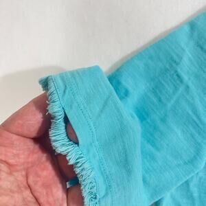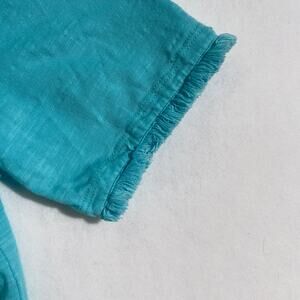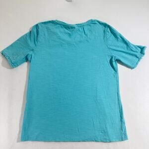 T- Shirt Chico's Woman's Size 0 (XS/4) Fringed Short Sleeve Cuffs Teal/ Greenish