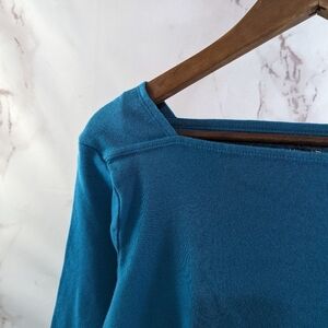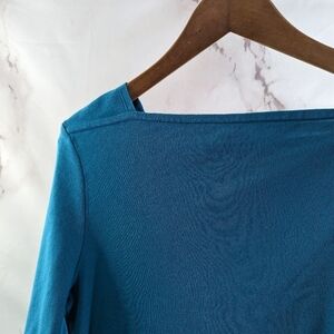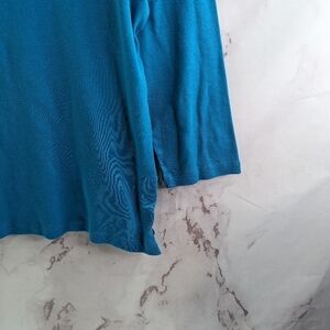 Chicos T Shirt Women Large 2 Blue Ultimate Tee Short Sleeve Square Neck Buttons