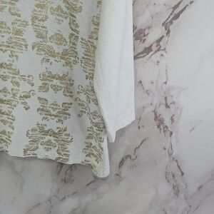 Chicos T Shirt Women Large 2 White Tee V Neck Gold Stamp Printed Quarter Sleeve