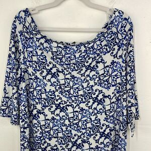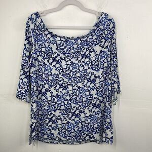 Chico’s TRAVELERS CLASSIC Off-The-Shoulder Top paisley Blue & White size L