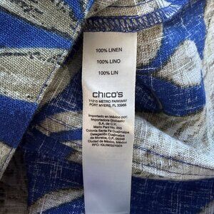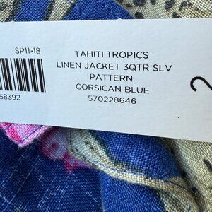 Chicos Tahiti Tropics Linen Jacket 3/4 Sleeve Size 2/L Corsican Blue Floral Prin