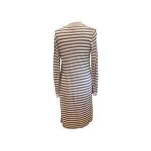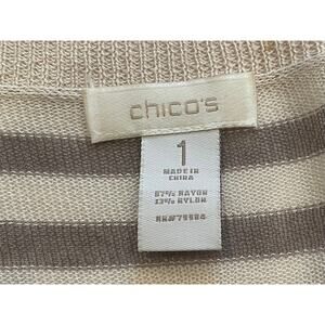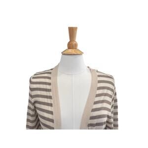Chico's Tan, Ivory Lightweight Striped Long Open Front Cardigan Sweater, M