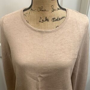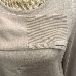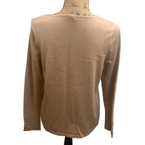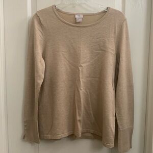 Chicos Tan Knit Crew Neck Sweater Covered Button Detail Pullover Size 1 (M)