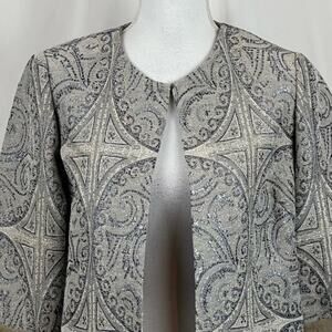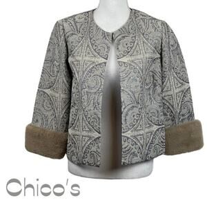 Chico’s Metallic Textured Faux Fur Cuff Evening Jacket NWOT