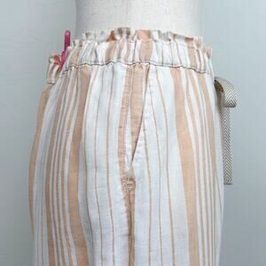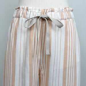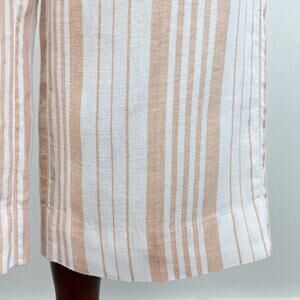 Chico's Tan Stripe 100% Linen Wide Leg Drawstring Waist Cropped Pants