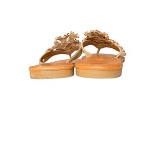 Chicos Tan Thong Sandals w/Red, White and Gold Beading Sz 5