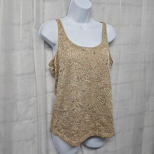 Chico's Tank Y2K Tan Floral Lace Mesh Whimsigoth Fairy 2 (L)