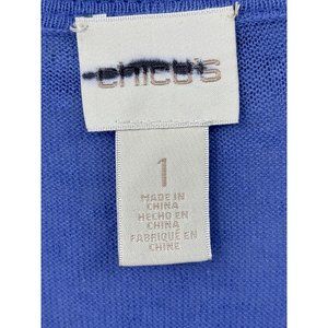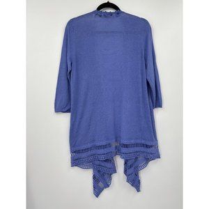 Chico's Tassel Cardigan Open Front Linen Blend Blue Size 1 (8)