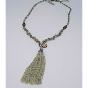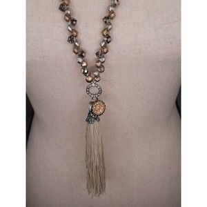 Chicos Tassel Necklace Metal Beads Neutral Tones 21-24" Adjustable $55.50 NEW