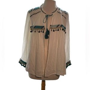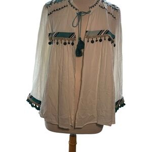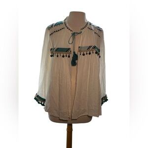 Chico’s Tassel Tie Jacket Womens Size 2 Large Beaded Embroidered Long Sleeves