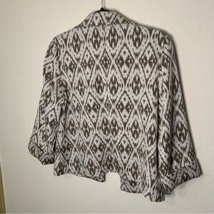 Chico's Taupe and White Patterned Light Weight Jacket Size 0/ Small. Three quarter length sleeves