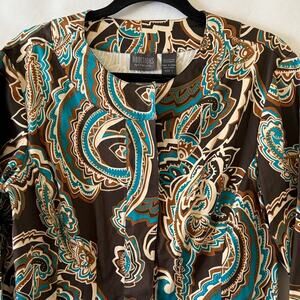 Chico’s Teal Brown Paisley Jacket Size 1 Sz M Boho Western Cotton Blend Retro