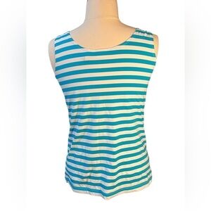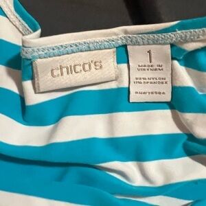 Chicos tank top- no signs of wear. White with vertical blue stripes. See pics with approximate measurements