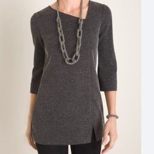 Chico's Textured Asymmetrical Tunic Black White Blouse Top Chico's 4 - XXL