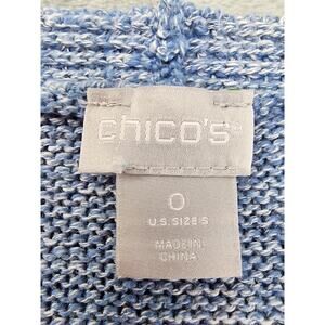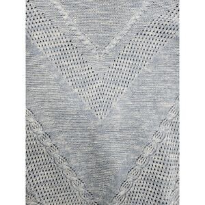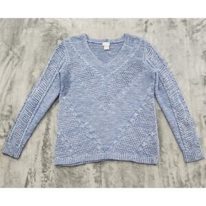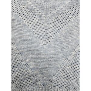 Chico's Textured Knit V-Neck Sweater Size 0 S Blue Chevron Pullover Long Sleeves Open Knit