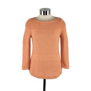 Chico’s Textured Mix Pullover 3/4 Sleeve Orange Sweater Women's Size XS Petite