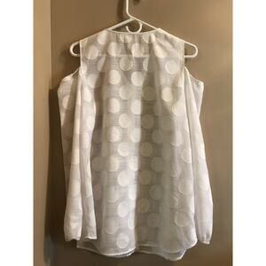 Chico's Textured Polka-Dot Cold-Shoulder Optic White Top Shirt Blouse Size 1 Med