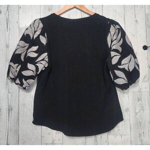 Chico's Textured Puff Sleeve Short Sleeve V Neck Business Casual Top Sz 1 / M