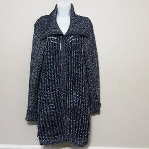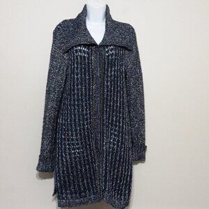 Chico's Textured Tina Cardigan Sweater women 1 Snap Front Chains Blue boho comfy