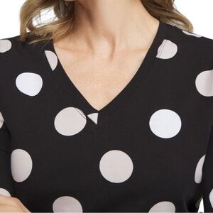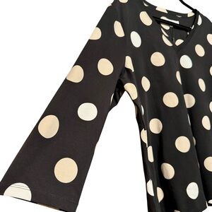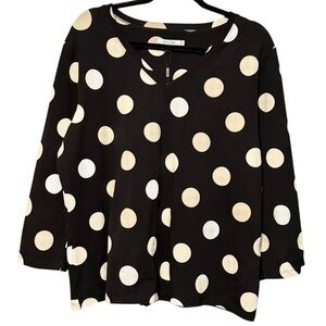 Chico’s The Perfect Tee 3/4 Sleeve Polka Dot Black Top