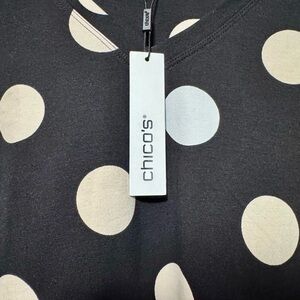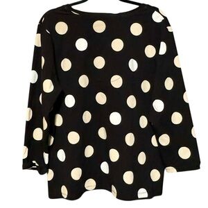 Chico’s The Perfect Tee 3/4 Sleeve Polka Dot Black Top Size 1X