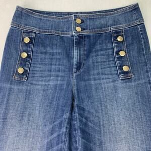 Chico's The Platinum Crop Size 1 Button Detail Yacht Sailor Cropped Denim Jeans