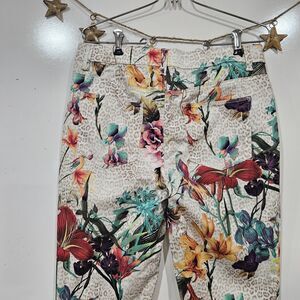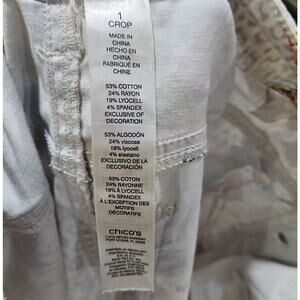 Chicos The Platinum Crop Floral Travel Tropical Soft Jeans Cruisewear Size 1/ 8 Small. No Rips or Stains and is in Excellent Pre-owned Condition. Inseam 23.5" Rise 11"