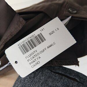 Chico's Ultimate Fit Pleated Cuff Ankle Pants in Fluidity Cairo taupe modal blend, size 1.5/US 10. New with tags, no flaws noted. Measurements are approximate, lying flat.