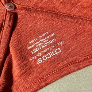 Chicos The Ultimate Tee Size Medium Henley Button 3/4 Sleeve Cotton Modal Orange