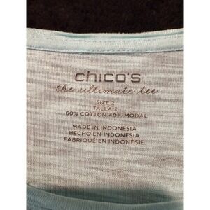 Keywords: Chico's, The Ultimate Tee, Long Sleeve Top, Women's Top, Casual Top, Size 2, Blue Top, Cotton Blend, Comfortable Tee, Relaxed Fit, Everyday Wear, Layering Top, Button Sleeve