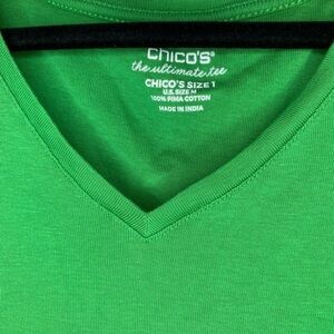 Chicos The Ultimate Tee V-Neck Solid Green Pima Cotton Short Sleeve Size Medium