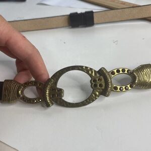 Chico's Thin Leather Belt with whimsigoth whimsifairy Art Deco Buckle L #hg1