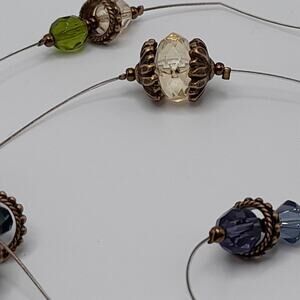 *Description: This is a unique Chico's necklace with three strands. The shortest strand is 19 inches and has closely placed beads which include beads in green and purple. On the bottom two strands, the beads are strung on wire and the beads are mostly separated. This would be a great addition to your jewelry collection or make a great gift!