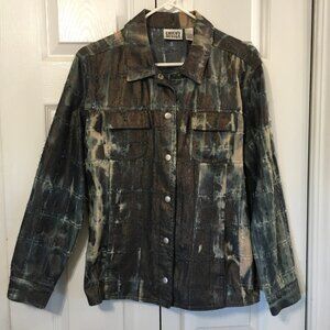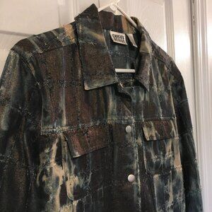 Tie Dye denim look, patch work jacket, worn once, like new condition.
