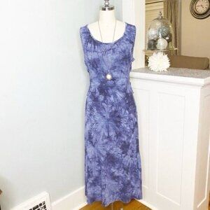 Chico’s Blue & White Tie Dye Striped Sundress Maxi Dress. Ties and cinches at both sides. Sleeveless. New without tags. Size 0, which is equal to a size 4. Small.