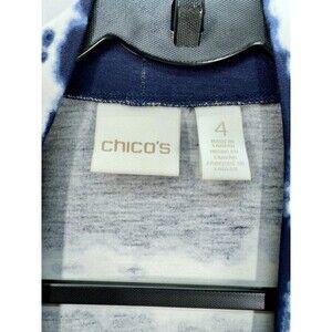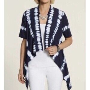 Chicos Tie Dye Stripe Dulcet Open Front Cardigan Sz 4/2XL Blue Short Sleeve Top. Excellent pre-owned condition with no flaws found. Measurements in photos. Chicos size chart in photos. Fast shipping!