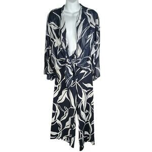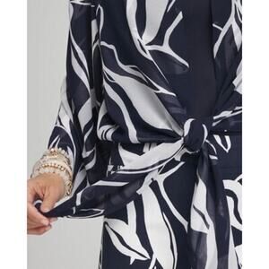 Chico's Tie Front Kimono Light Weight Blue & White XL Travel Vacation Cover Up
