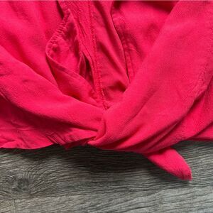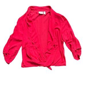 Chico's Tie Front Wrap Cardigan Red Roll Tab Sleeves size 3 / Women's size Large